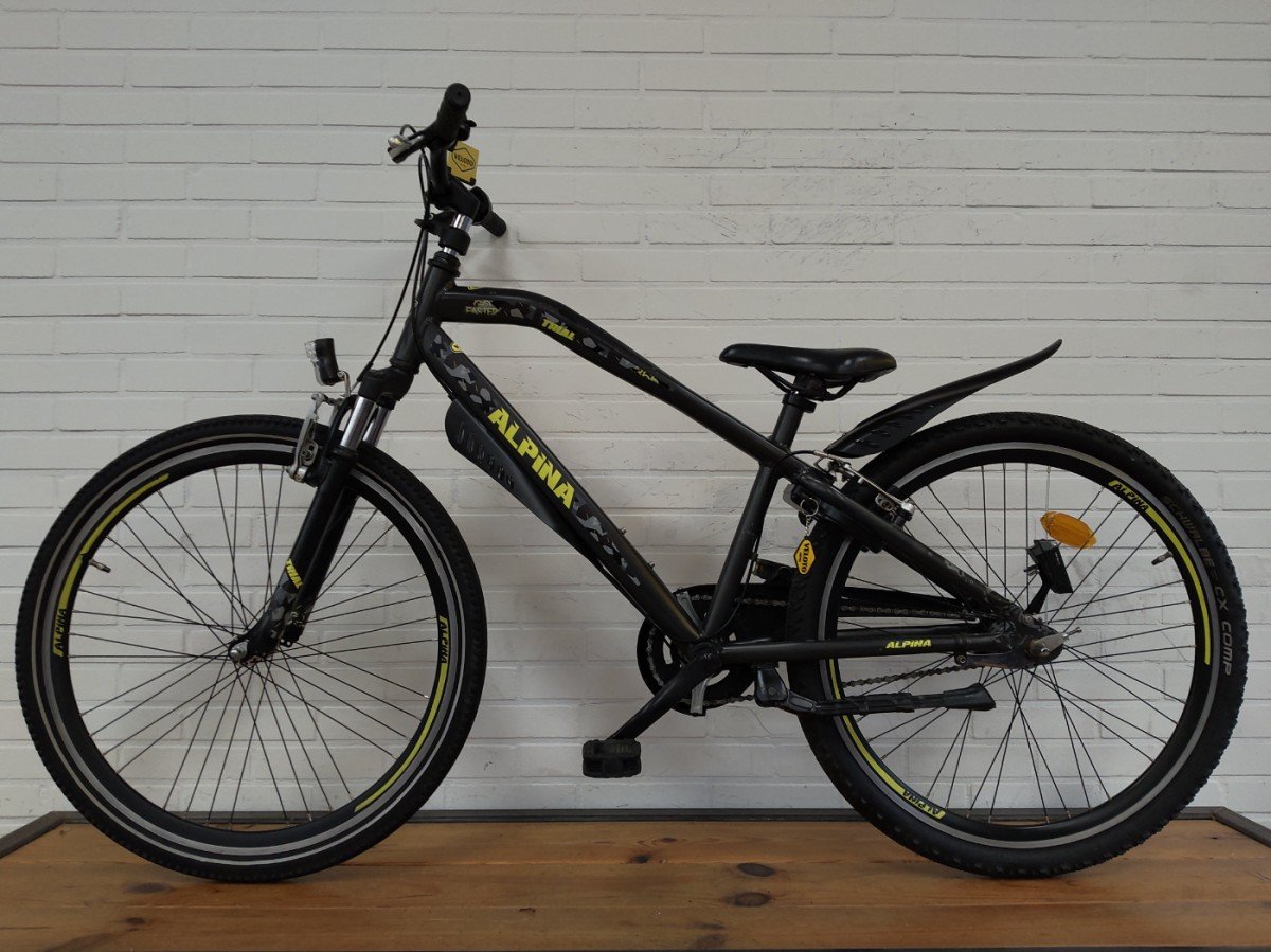 Alpina fiets Trial Jongens, 26 inch. Kleur: Desert Grey Matt. Uitgerust met V-brakes voor en achter en achter een remnaaf, aluminium frame. Kleurnummmer: RAL 7023 CC Matt.